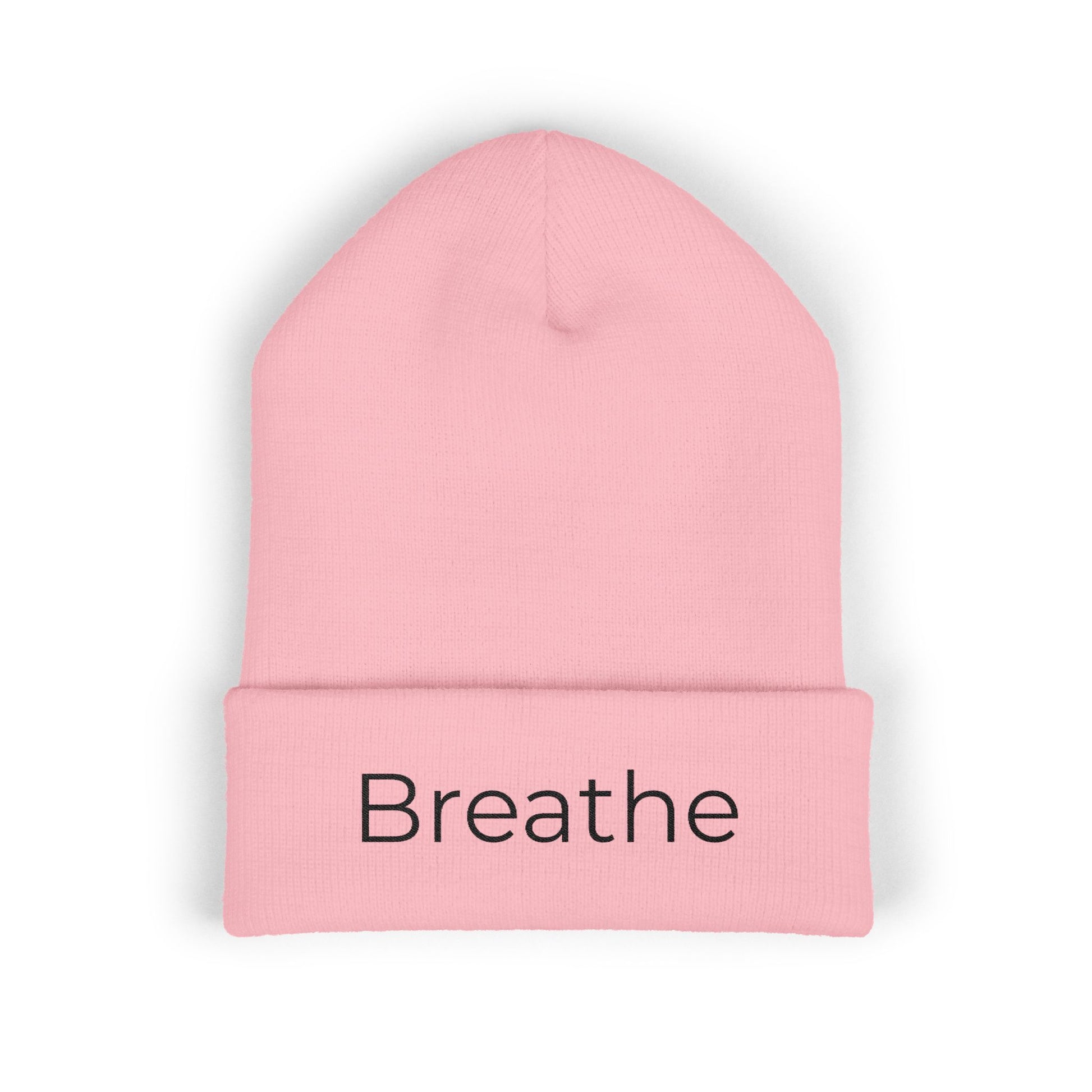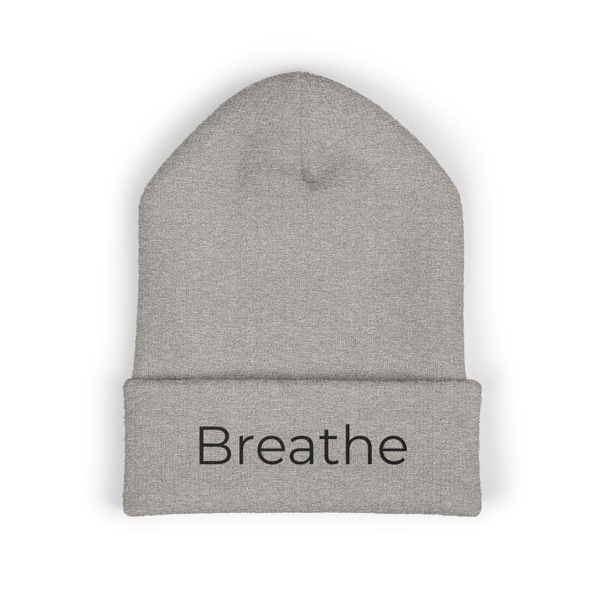 Breathe embroidered beanie | cuffed knit hat, minimalist text